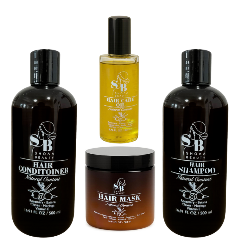 Pamper your hair with the complete SB Natural Hair Care Essentials Bundle. This all-in-one set includes our revitalizing Shampoo, nourishing Conditioner, deeply hydrating Hair Mask, and transformative Hair Oil.